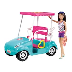 Barbie Sisters Golf Cart and Skipper Doll Set: Golf carts have never been more glamorous. The Barbie Sisters Golf Cart lets Barbie sisters hit the greens in style, cruising around in a golf cart built for four. With moving wheels and pretty decals, this pink and blue vacation ride can take Barbie sisters on hole-in-one fun. Skipper doll included.
